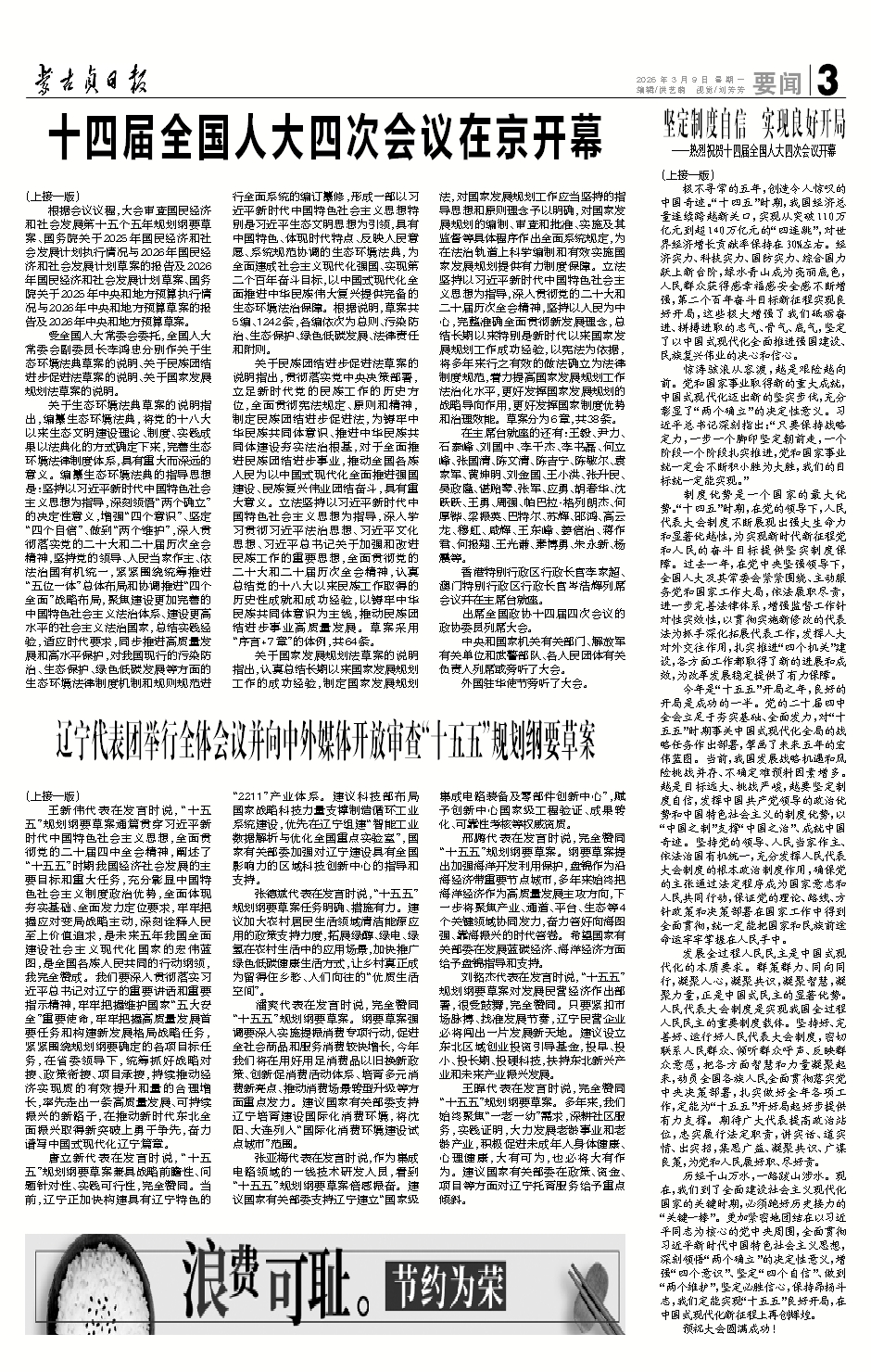 辽宁代表团举行全体会议并向中外媒体开放审查“十五...