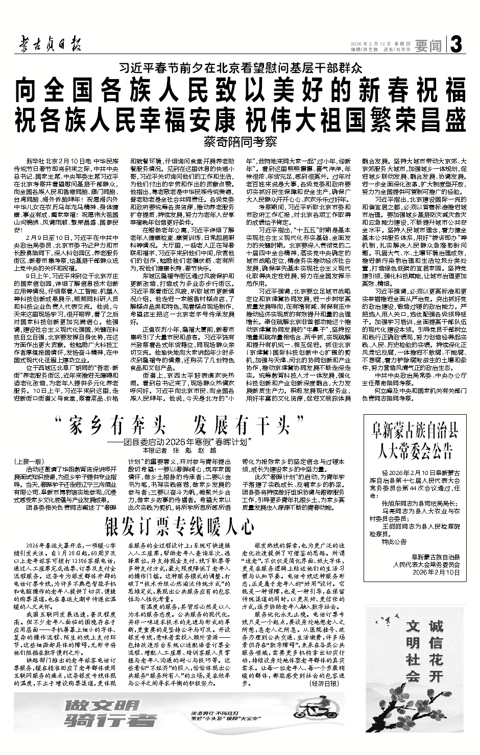 向全国各族人民致以美好的新春祝福 祝各族人民幸福...