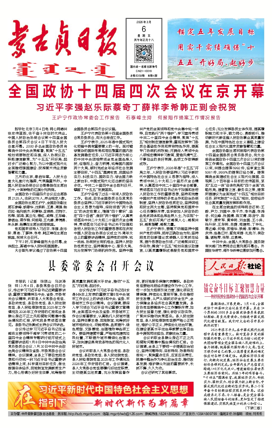 全国政协十四届四次会议在京开幕
